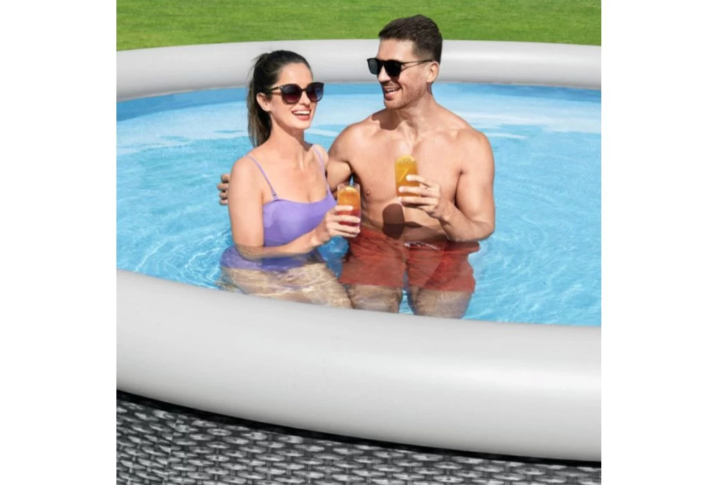 Het Bestway Fast Set Rotan is gemaakt van DuraPlus materiaal voor extra duurzaamheid en stevigheid. Ook is de rand van het zwembad opblaasbaar Het uiterlijk van het zwembad is aan de buitenzijde in rotan print uitgewerkt.