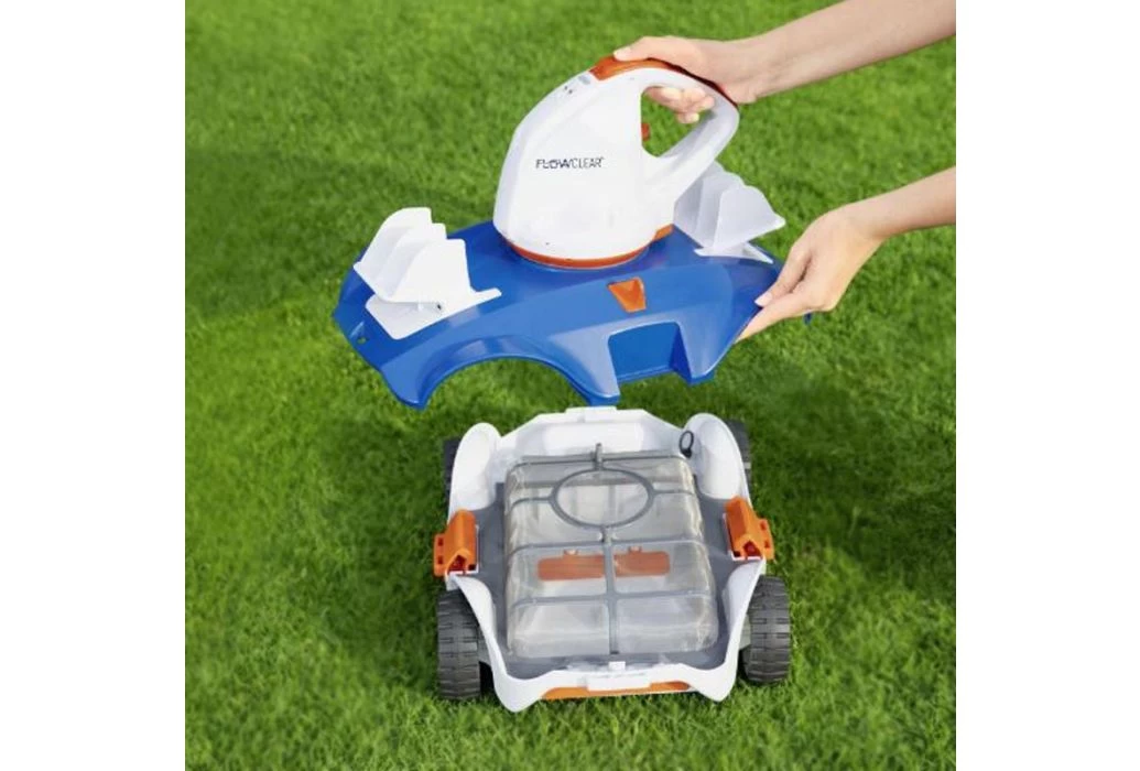 Deze Bestway Flowclear AquaTronix robot is perfect geschikt voor inbouw- en opbouwzwembaden met een vlakke bodem. De zwembadrobot werkt op Lithium batterijen waardoor er geen snoer nodig is en wordt ingeschakeld via een sensor zodra de robot volledig ondergedompelt is. Wanneer de batterijen volledig leeg zijn hebben deze een oplaadtijd van 5-6 uur. In het stalen filter welke te bereiken is aan de bovenkant van deze AquaTronix robot kan maar liefst 4,5 liter vuil opgenomen worden. Daarnaast beschikt de Bestway Flowclear AquaTronix over een zuigkracht van 2,7 m³/u en een snelheid van 1 km/u. Een reinigingsprogramma duurt gemiddeld 90 minuten.