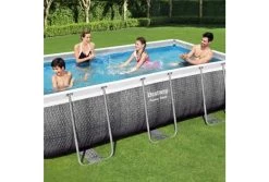 De liner van de Bestway Power Steel Rotan zwembaden is gemaakt van duurzaam DuraPlus materiaal. Voor extra stevigheid is dit zwembad voorzien van een 2-laags PVC band met een kern van polyester gaas. Het uiterlijk van de liner is aan de buitenzijde in een grijze rotan print uitgewerkt. Aan de binnenzijde van dit zwembad is dit een blauwe mozaïek print.Â