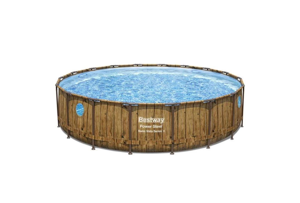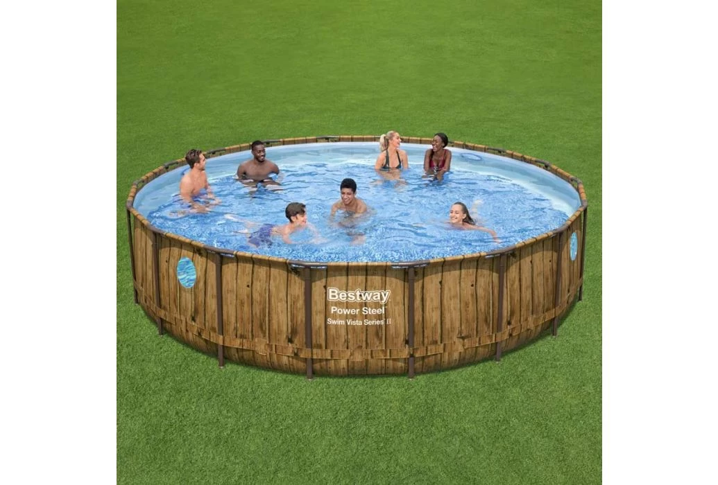 De liner van de Bestway Power Steel Swim Vista zwembaden zijn gemaakt van TriTech materiaal. Dit materiaal is sterk en gemaakt van duurzaam vervaardigd materiaal. Voor extra stevigheid is dit zwembad voorzien van een 3-laags PVC band. Het uiterlijk van de liner is aan de buitenzijde in houtprint uitgewerkt, dit geeft een mooie natuurlijke look. Aan de binnenzijde is dit een blauwe kiezelprint.