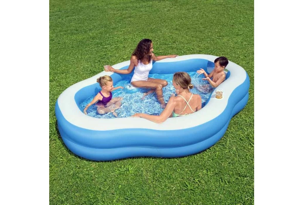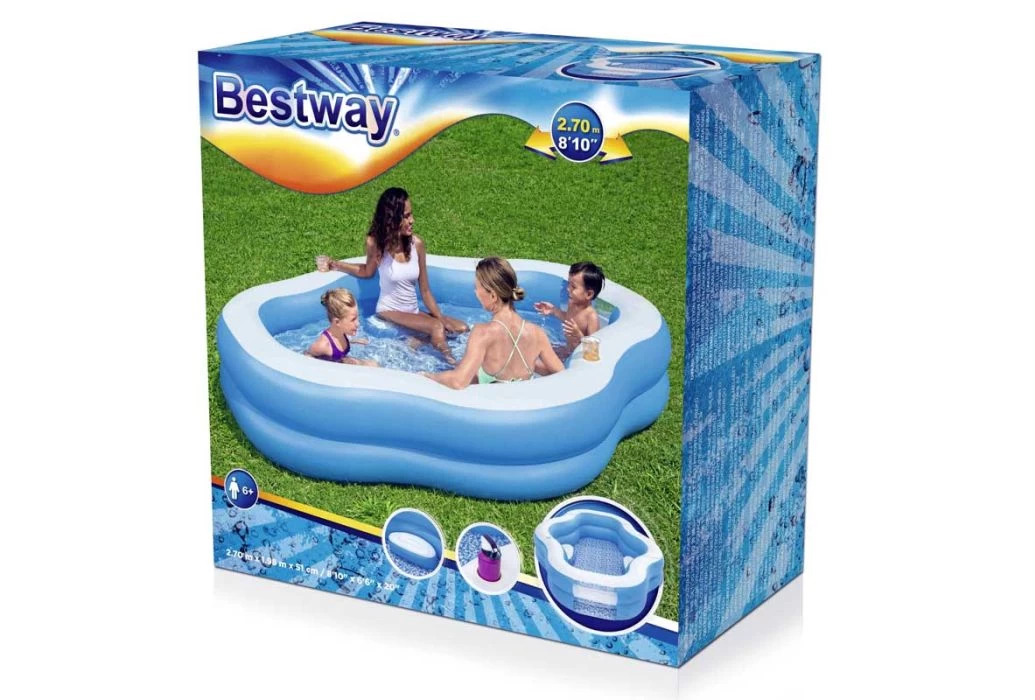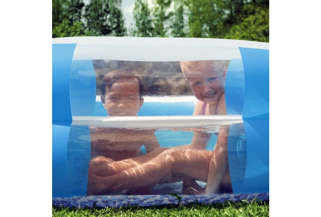 Dit Bestway Splashview opblaasbare zwembad zorgt voor verkoeling op warme dagen. Het bad bestaat uit 2 ringen en bevat 2 zitkussens, 2 bekerhouders en een transparant doorkijkraam.Â