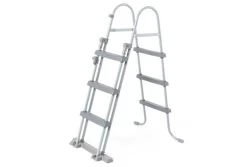 Om het zwembad op te zetten ga je opzoek naar een geschikte plaats in jouw tuin. Deze plek dient vlak te zijn en ons advies is om beschermingstegels te gebruiken, omdat je hierdoor een veilige en stabiele ondergrond creëert. Als dit is gebeurd zorg je ervoor dat je alle onderdelen binnen handbereik hebt en begin je met het opzetten van het frame en de liner. Als je dit hebt afgerond sluit je de filterpomp aan en plaats je de zwembadtrap. Vervolgens vul je het zwembad met een klein laagje water van circa 1 tot 2 centimer. Hierdoor kun je de liner glad strijken. Wanneer dit gebeurd is vul je het zwembad tot aan de waterlijn zodat je kunt gaan zwemmen! Het zwembad kan je ook weer eenvoudig leeg laten lopen via het ingebouwde leegloopventiel welke aan te sluiten is op een tuinslang.