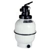Het filtervat van dit zandfilter vul je met filterzand, filterglas of glasparels. Het bekende filterzand is het traditionele filtermedium en dien je na 4 tot 5 jaar weer te vervangen. Er wordt meer en meer gebruik gemaakt van filterglas en dat gaat wel 10 tot 15 jaar mee. Glasparels zijn een verbeterde variant van het filterglas. Deze ronde parels zijn voorzien van een nano coating, waardoor ze zelfreinigend zijn en een levensduur van meer dan 25 jaar hebben.