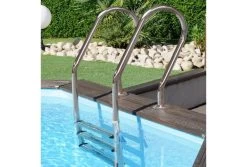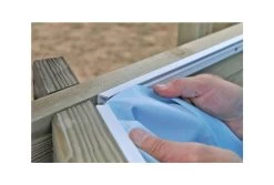 De ombouw van deze Gré Normandië heeft een dikte van 46mm, de afdekkappen zijn 28mm. Deze worden aan elkaar vastgemaakt door middel van RVS strips. De combinatie van deze RVS strips en het grenen hout zorgt ervoor dat je zwembad een hele luxe, natuurlijke en ook een robuuste look krijgt.
