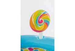 Urenlang speelplezier met dit Candy Zone speelbad van Intex! Het zwembadje is 2,95 x 1,91 x 1,30 meter groot en bestaat uit een groot en klein deel. Het grote deel heeft een capaciteit van 206L, en het kleine deel heeft een capaciteit van 168L.Â
