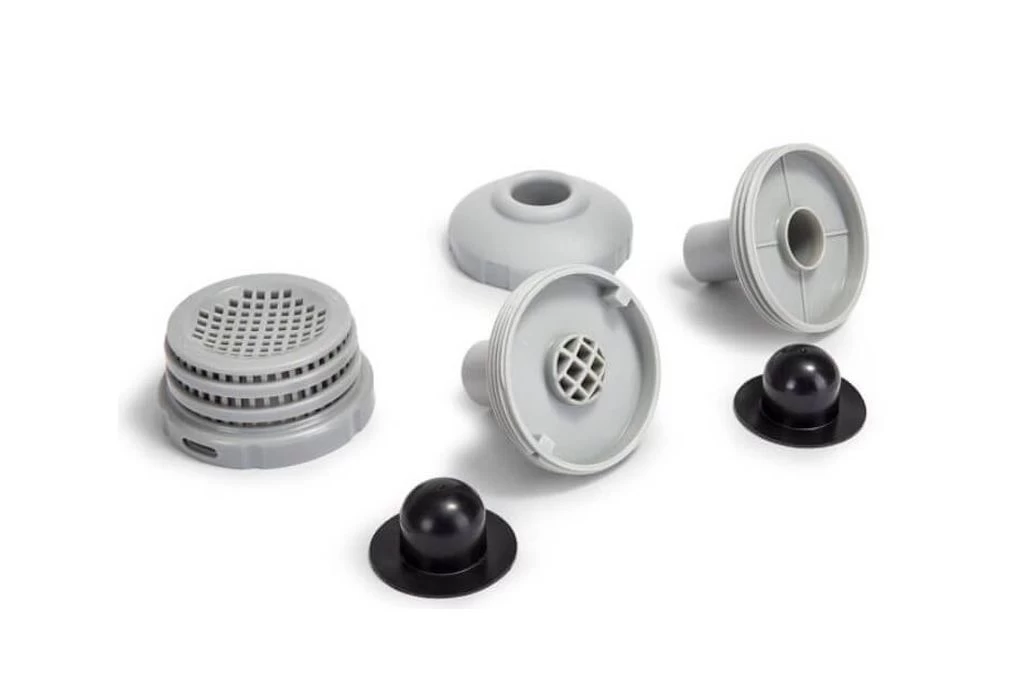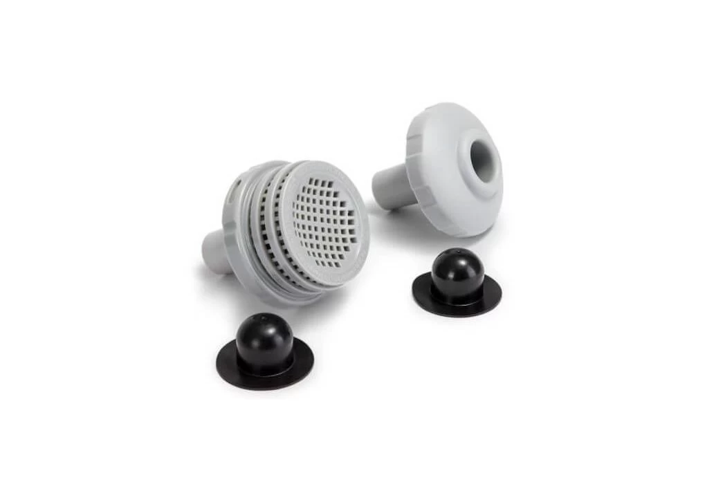 Deze Intex in- en uitlaatset is geschikt voor alle zwembaden met een 32 mm aansluiting. Hiermee verbindt je de 32 mm aansluiting van het zwembad met de aansluitslangen naar de filterpomp. Via deze in- en uitlaat kan het water naar de filterpomp stromen en weer terug.