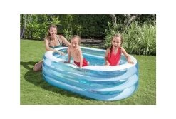 Dit ovale Intex opblaasbaar zwembad zorgt voor verkoeling op warme dagen. Het bad bestaat uit 3 ringen en een comfortabele, opblaasbare bodem.Â