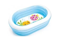 Dit ovale Intex opblaasbaar zwembad zorgt voor verkoeling op warme dagen. Het bad bestaat uit 3 ringen en een comfortabele, opblaasbare bodem.Â