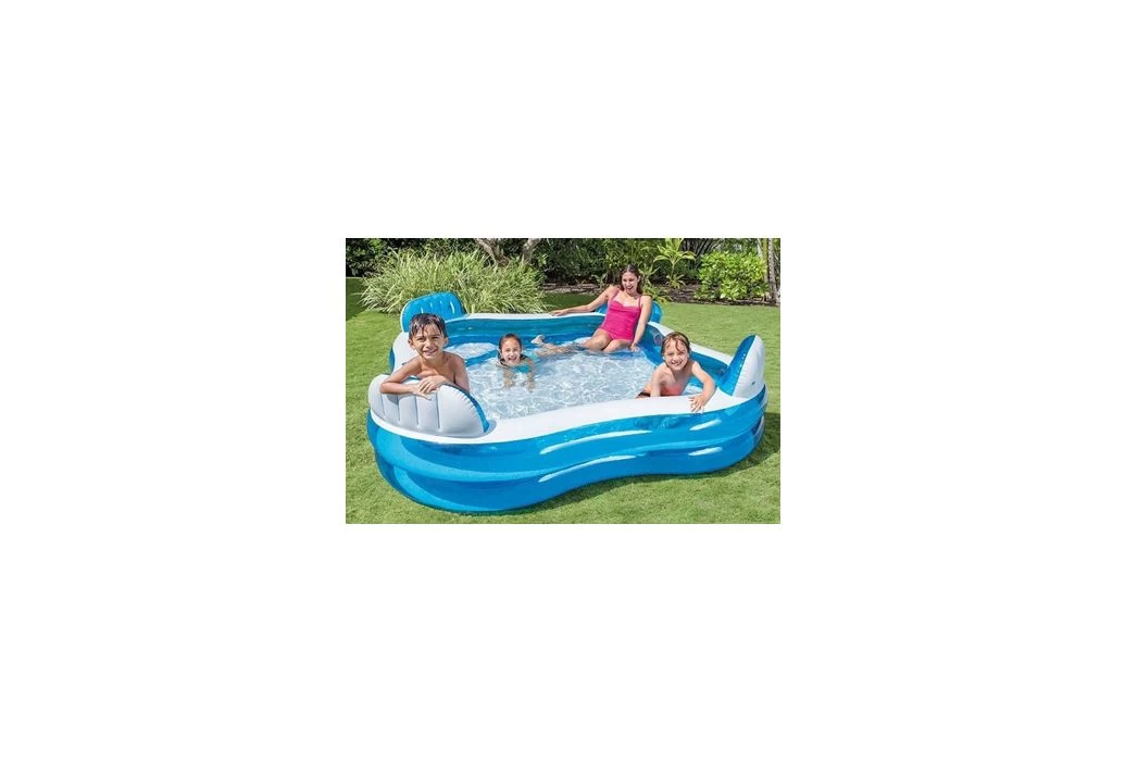 Intex opblaasbaar zwembad met 4 zitplaatsen. De totale hoogte van het zwembad is 60cm (hoogte rugkussen). De rand heeft een hoogte van 40cm.