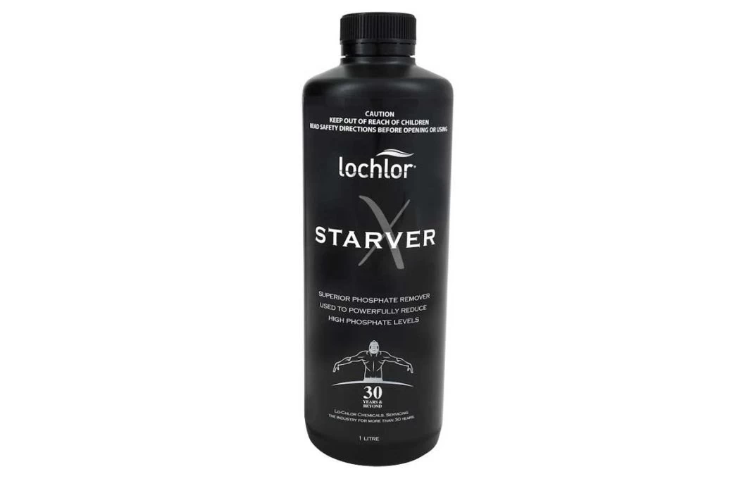 - 1 liter Starver X verwijdert tot wel 6000 ppb (6 ppm) aan fosfaten uit een 50.000 liter zwembad.